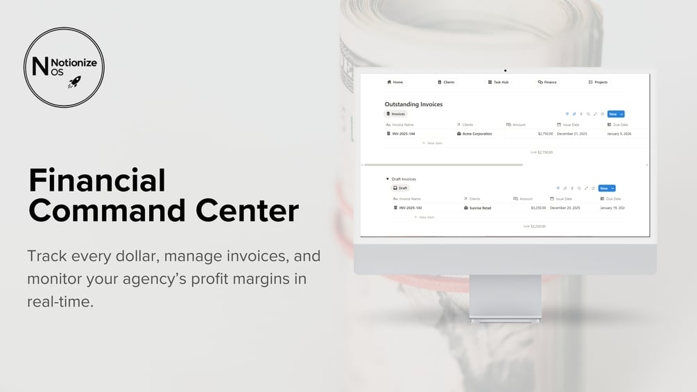 The ultimate logical workspace for agencies. Manage Clients, Projects, Tasks, and Finances in one high-performance, clutter-free Notion system.
